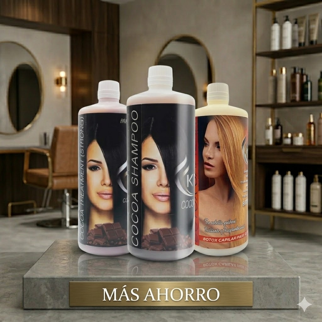 Este combo completo te permite tratar cualquier tipo de cabello con resultados sorprendentes. La oferta incluye dos tratamientos, cada uno de 1000ml: Keratina Cocoa y Botox Capilar Ultra Hidratante.